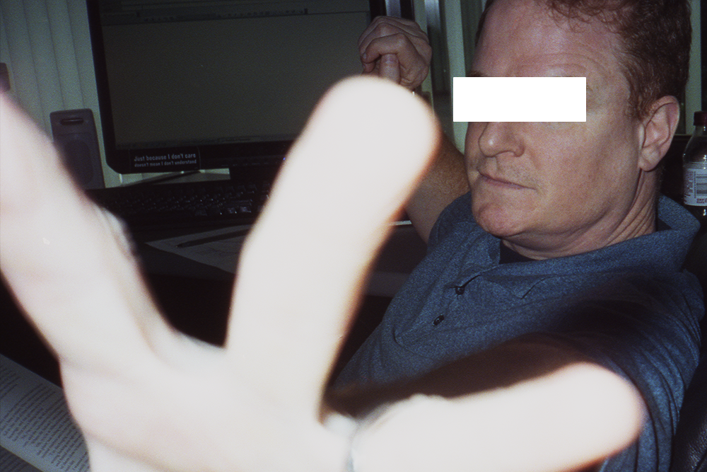 - Ongoing, lifelong photographic series of friends, co-workers, acquaintances, and enemies giving high fives to the camera. Tools used: 35mm film camera with flash.